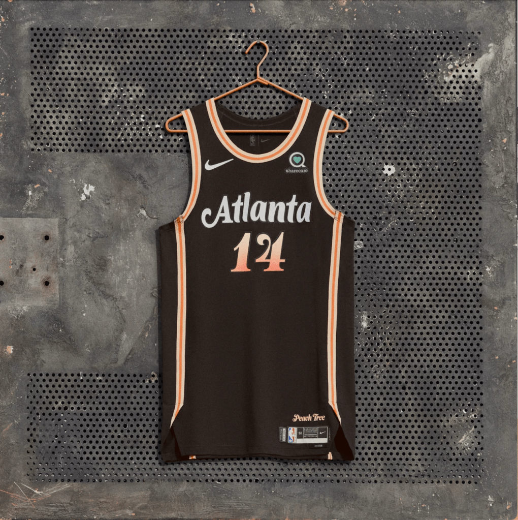 The Peach Tree Uniform has a great color scheme but as you will soon find out i’m not a huge fan of black jerseys. The general design concept just doesn’t fit in with the bright red and yellow you typically see on a Hawks uniform but this is still sick.